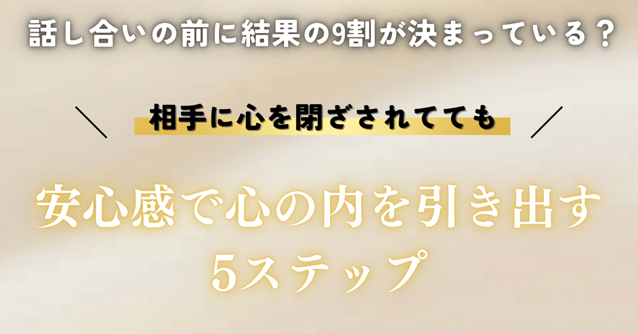 話し合いの前に結果の9割は決まってる?相手に心を閉ざされてても「安心感」で心の内を引き出す5ステップ|... 「私以外は全員敵!誰も信じられない!」 「…前はそう思ってたんだよね。」 そう打ち明けてくれた彼女。 僕の部屋で一緒にコーヒーを飲みながら そう語る彼女は穏やかな目...